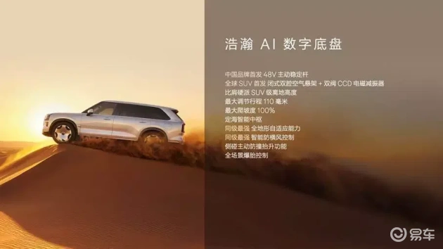 底盘技术方面,极氪9X首次搭载浩瀚AI数字底盘,集成闭式双腔空气悬架、双阀CCD电磁减振器及48伏主动稳定杆技术,可在0.2秒内完成80毫米举升,动态侧倾接近“零侧倾”。该系统首次将AI算力引入底盘领域,通过定海智能中枢实现姿态控制从“事后跟随”到“提前预判”的进化,即使在120公里/小时的高速湿滑路面双轮爆胎,仍能稳稳刹停。在越野场景下,系统可自动识别深雪、泥地等7种地形并匹配专属驾驶模式。