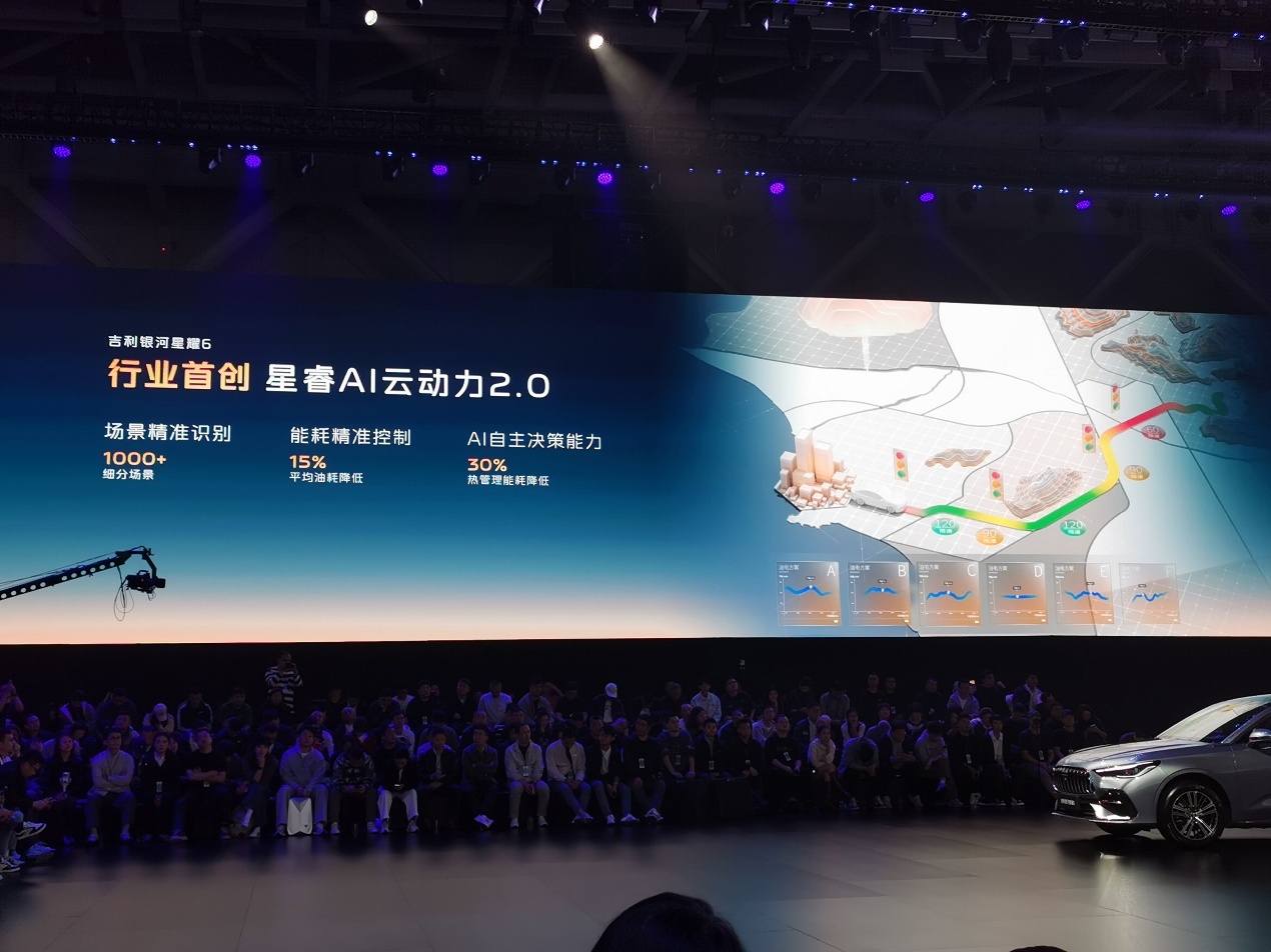 动力方面,吉利银河星耀6采用EM-i 雷神AI电混2.0系统,其中1.5L发动机最大功率82kW,最高热效率达47.26%;电机最大功率120kW,匹配1挡DHT变速箱。磷酸铁锂电池提供8.5kWh和17kWh两种容量版本,对应CLTC纯电续航里程分别为60km和125km,CLTC综合续航里程可达1700km。新车采用前麦弗逊式独立悬架与后扭力梁式非独立悬架的底盘结构,星睿AI云动力2.0能够识别上千种细分场景,并根据实际条件实时优化油电分配,使车辆在CLTC工况下馈电油耗低至2.8L/100km。
