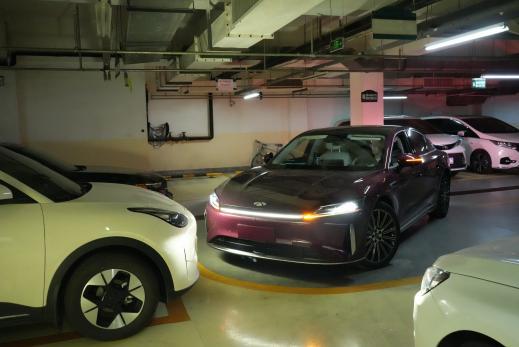 最后再来说说辅助泊车 车身前后12个超声波雷达 3个毫米波雷达 给车机提供了非常丰富的环境参数 我们在地库中模拟了一下断头路停车的场景 在前面侧面都有车的情况下 都可以很好的完成停车动作 并且他的路径规划和我们人的思考方式也是一样的。