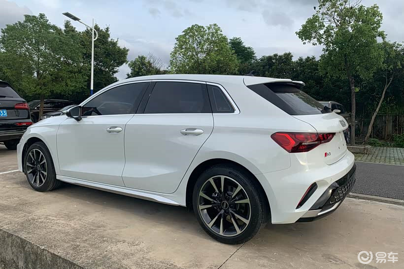 外观颜值上,奥迪A3的整体设计也比较具有辨识度,它的尺寸虽然不大,但是该有的设计都有,经典的鲨鱼嘴进气格栅,中网是点阵式的设计,搭配两侧LED大灯,整个前脸还是很有辨识度。尾部造型和前脸相呼应,尾灯简单大气,下方同样有类似中网的设计,凌厉的腰线从尾部勾勒而出,加上富有空气动力学的车顶、刀锋造型多幅式铝合金轮毂,使得侧面的层次感比较鲜明。