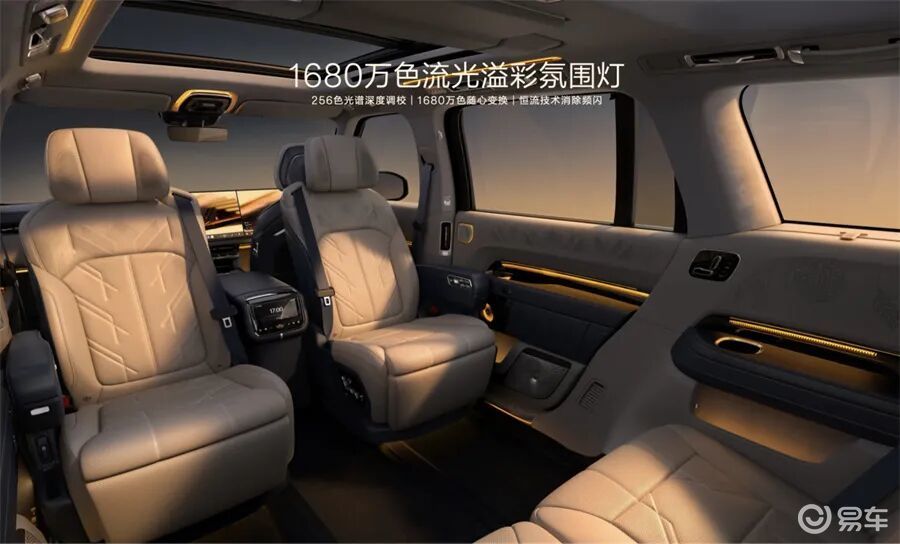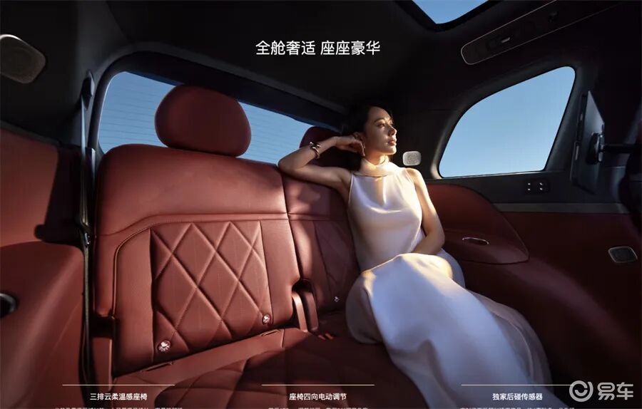 极氪9X的爆点在于内饰仪式感:32扬声器Naim音响、17英寸后排滑移大屏、二排旋转座椅、豪华座椅填充,这套东西其实是在给“老板车”服务。