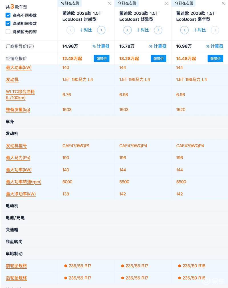 12月4日,长安福特蒙迪欧改款上市。新车一共6款车型,其中1.5T车型4款(包括一款混动),2.0T车型2款。价格从14.98万到19.98万元。起售价与2025款保持了一致。这其中,2.0T发动机很有来头。长安福特官方称其为“地表最强2.0T”,该发动机最大功率192kW,峰值扭矩408牛米。