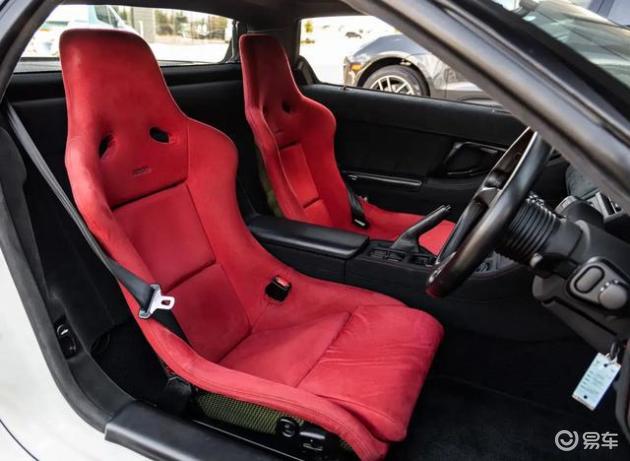 NSX-R作为NSX的性能版车型,从1992年11月投产到1995年9月停产,只针对日本市场发售了483辆,而此次拍卖的是第458辆。冠军白搭配黑色车顶已然是NSX-R的标志性涂装了,当然还有白色ENKEI锻造轮圈,前轮尺寸为16×7英寸,后轮17×8.5英寸,搭配普利司通搏天族RE-71RS轮胎。