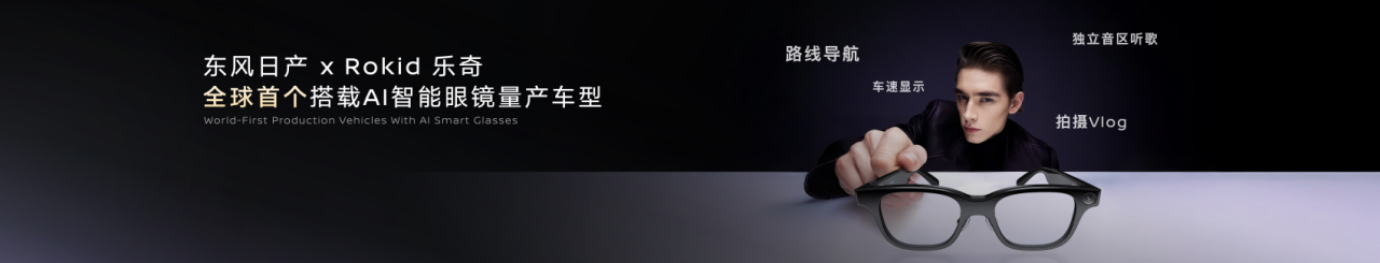 更有趣的是,东风日产还联合Rokid开发了全球首款量产汽车AI智能眼镜,佩戴后可与车机实时联动,导航、车速、音乐等信息可直接浮现于眼前,让驾驶更具科技感与沉浸感。