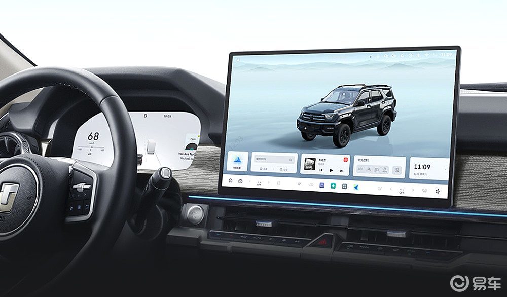 智能座舱体验方面,BJ60行政版通过大尺寸多屏幕构建了核心交互界面。10.25英寸全液晶仪表盘负责显示行车与驾驶辅助信息,