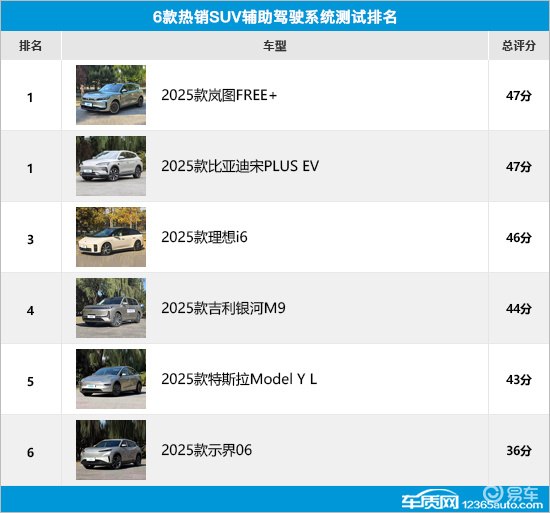 在辅助驾驶跟车状态测试对比中,除示界06外,其余车型均获得满分,起步和刹停过程中的响应速度和舒适度都能令人满意。示界06由于不支持自动跟车起步功能,因此在起步响应速度和起步舒适度两项未获得分数。