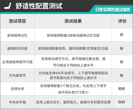 二、舒适性配置测试