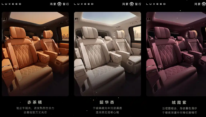 紧接着内饰部分,通过官图来看,智界V9也是有着将智能化和豪华感直接拉满的表现。鸿蒙智能座舱搭配一体式贯穿联屏,全液晶仪表、中控屏、副驾娱乐屏无缝衔接,再加上中控台的水晶旋钮、NAPPA头层真皮、天然实木饰板装饰,以及HUAWEI SOUND音响系统加持,豪华质感完全不输同级竞品,设计、用料可以说都在很线。