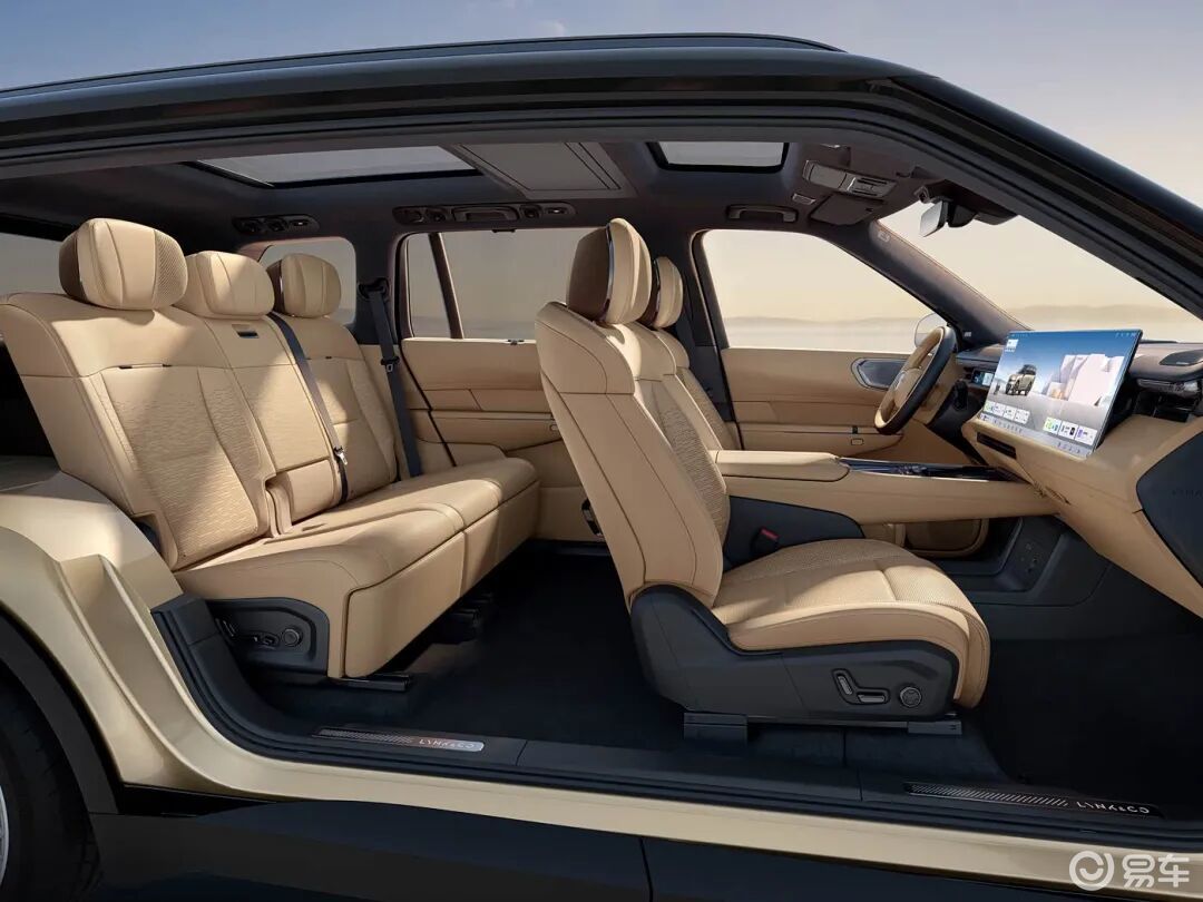 内饰方面,新车采用五座布局,采用两幅式圆形方向盘,搭配细长仪表盘、HUD抬头显示以及双联大屏,二排提供超大吸顶屏。配置方面,搭载Lynk Flyme Auto 2系统,二排座椅支持加热、通风与16点按摩,二排中间座椅标配座垫加热,标配激光雷达,提供千里浩瀚辅助驾驶,全系提供闭式双腔空悬+魔毯底盘。